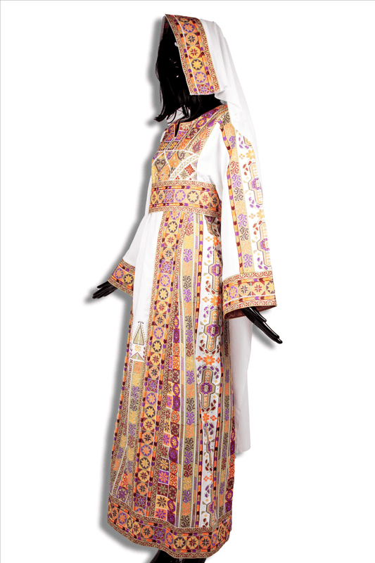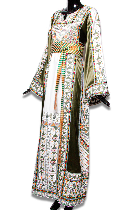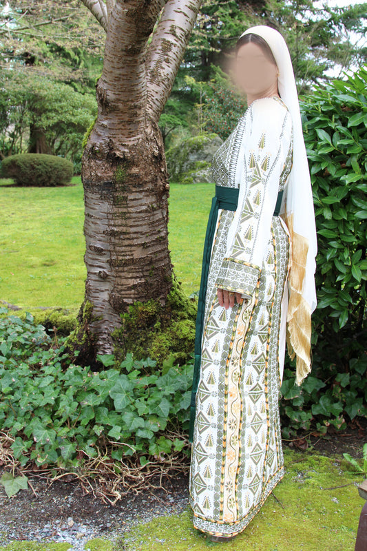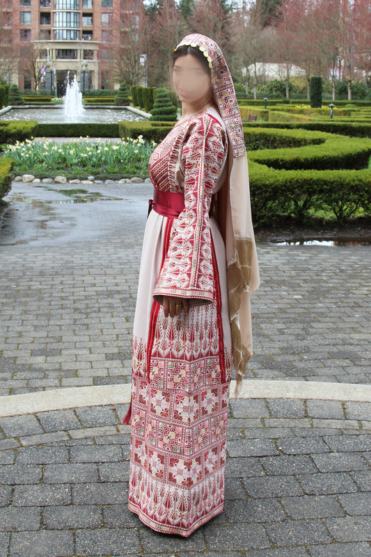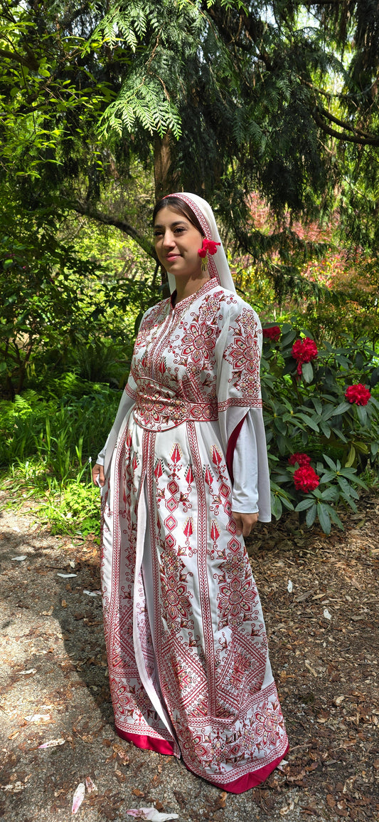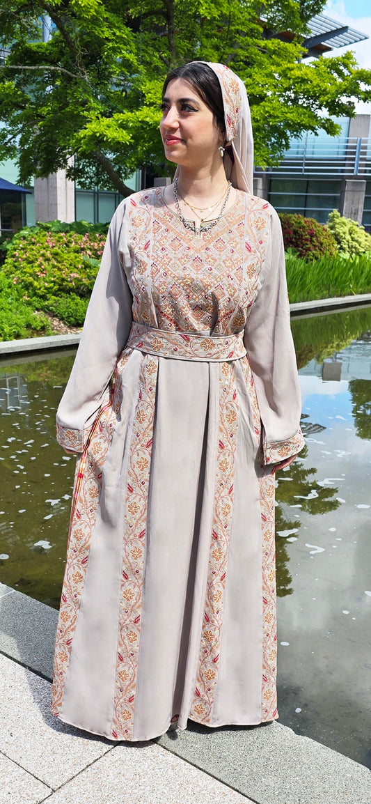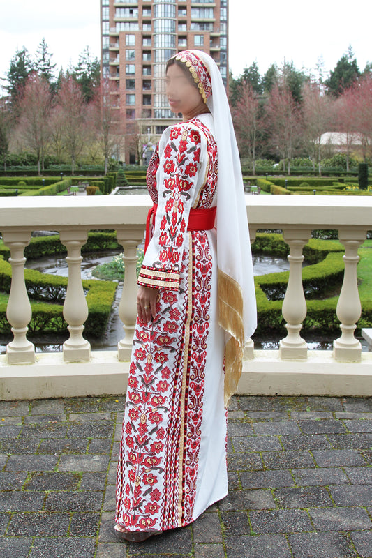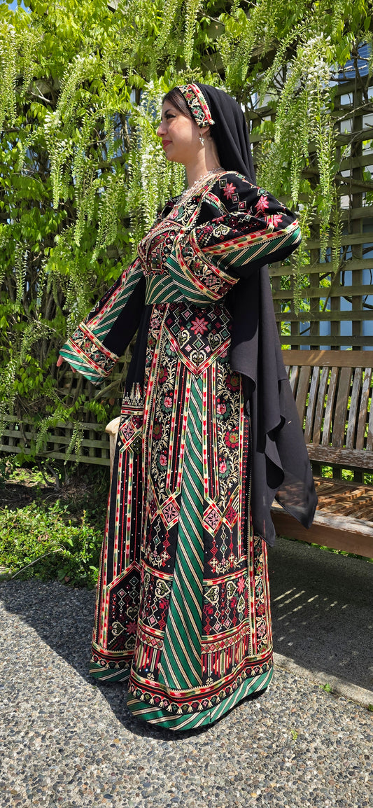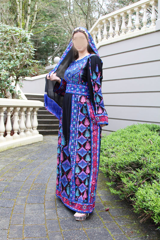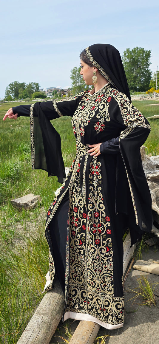 Make your special day even more memorable with our luxury Bridal Thobe. Handcrafted with exquisite Palestinian and Jordanian embroidery, this traditional henna dress will elevate your wedding