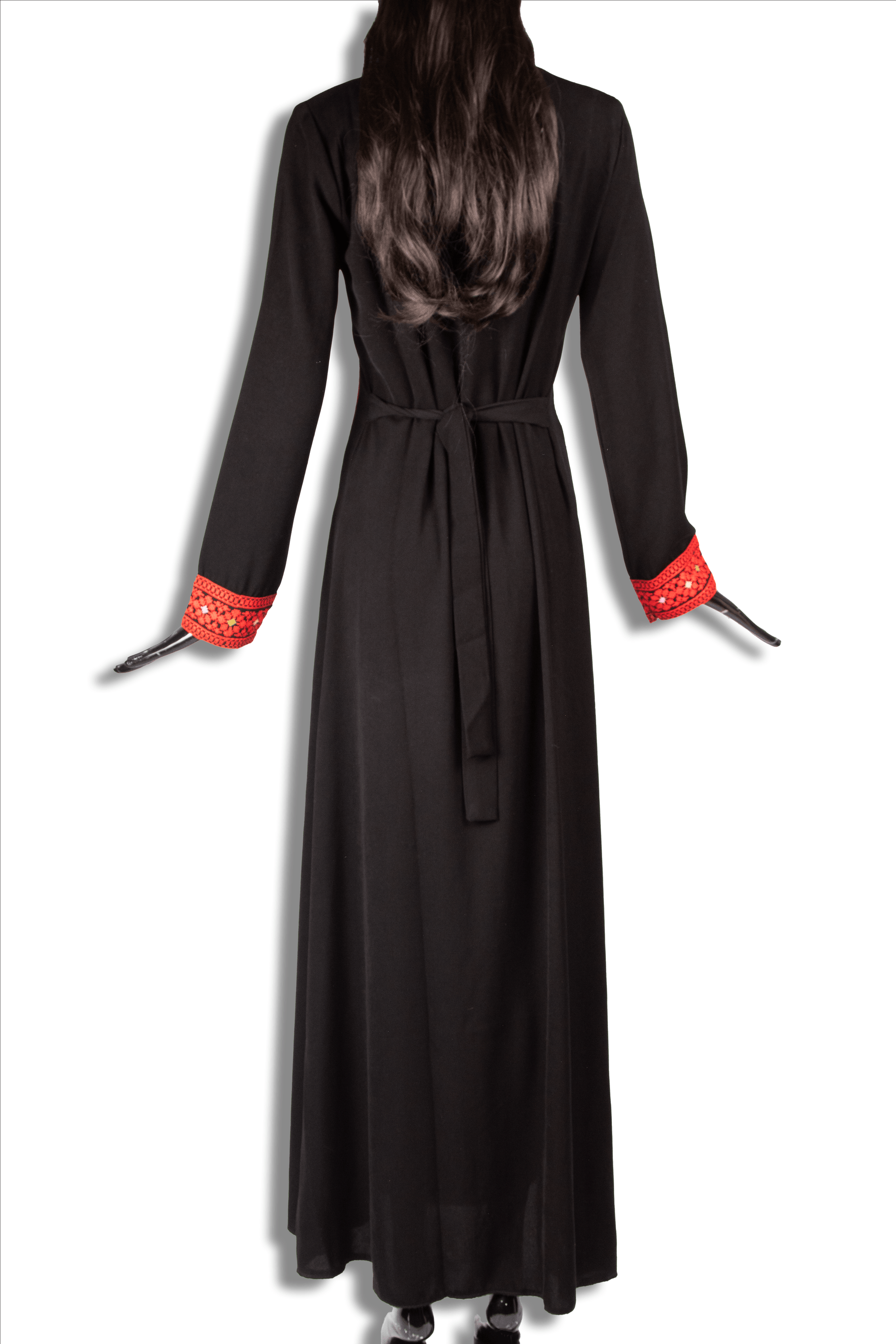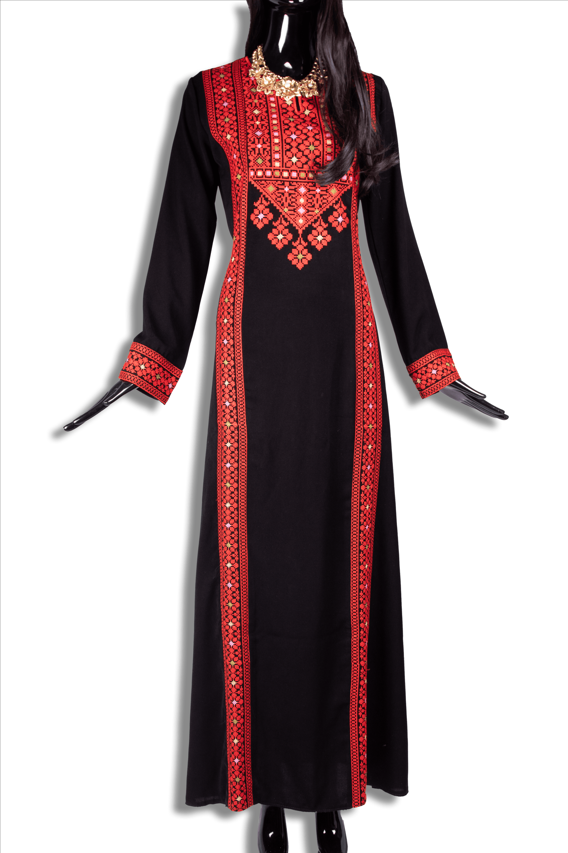 Introducing our Elegant Palestinian Thobe Embroidery Tatreez. Made with traditional Palestinian embroidery, this thobe is a beautiful representation of Palestinian culture and craftsmanship. Each piece is unique and showcases the intricate and skilled art of tatreez. Elevate your wardrobe with this timeless and elegant piece, perfect for any occasion.